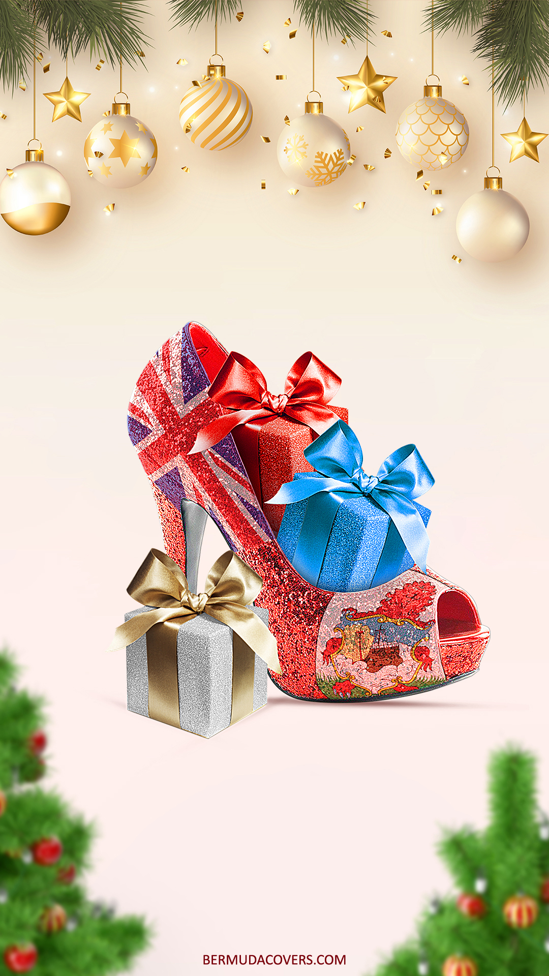 Download The Christmas Gift Boxes & Bermuda Flag High Heel Facebook Cover